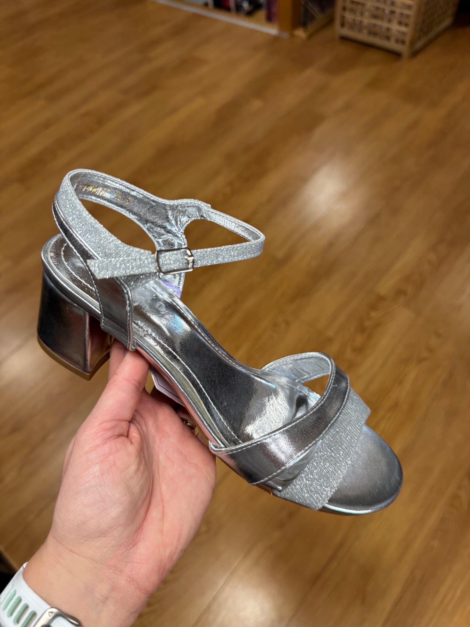 Sorento Small Block Heel Sandal with Sparkle/Metallic Strapping