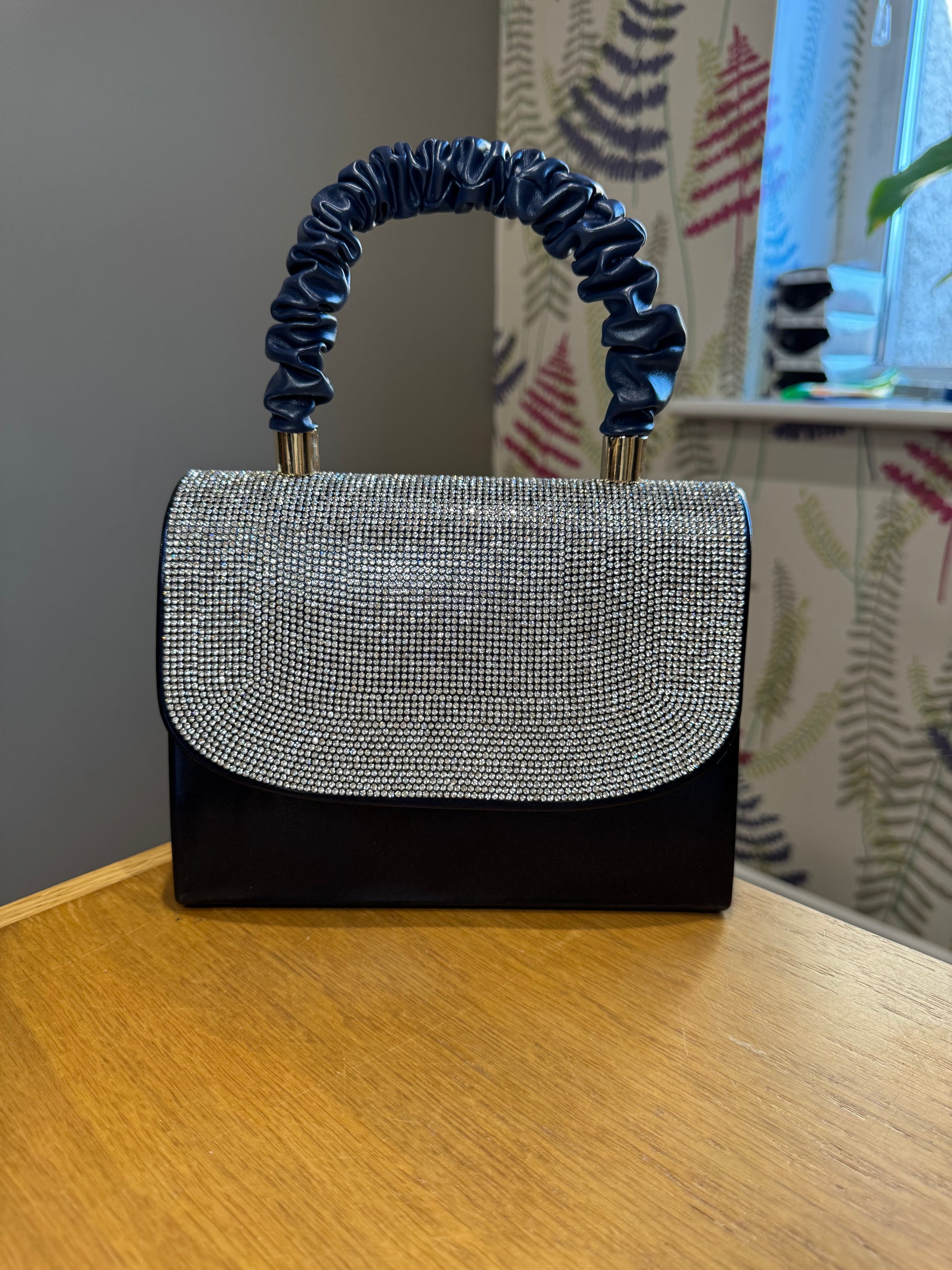 Sorento Small Handle Clutch Bag in Navy/Diamante to Match Sorento Roganstown Navy Sandal (Sold Separately)