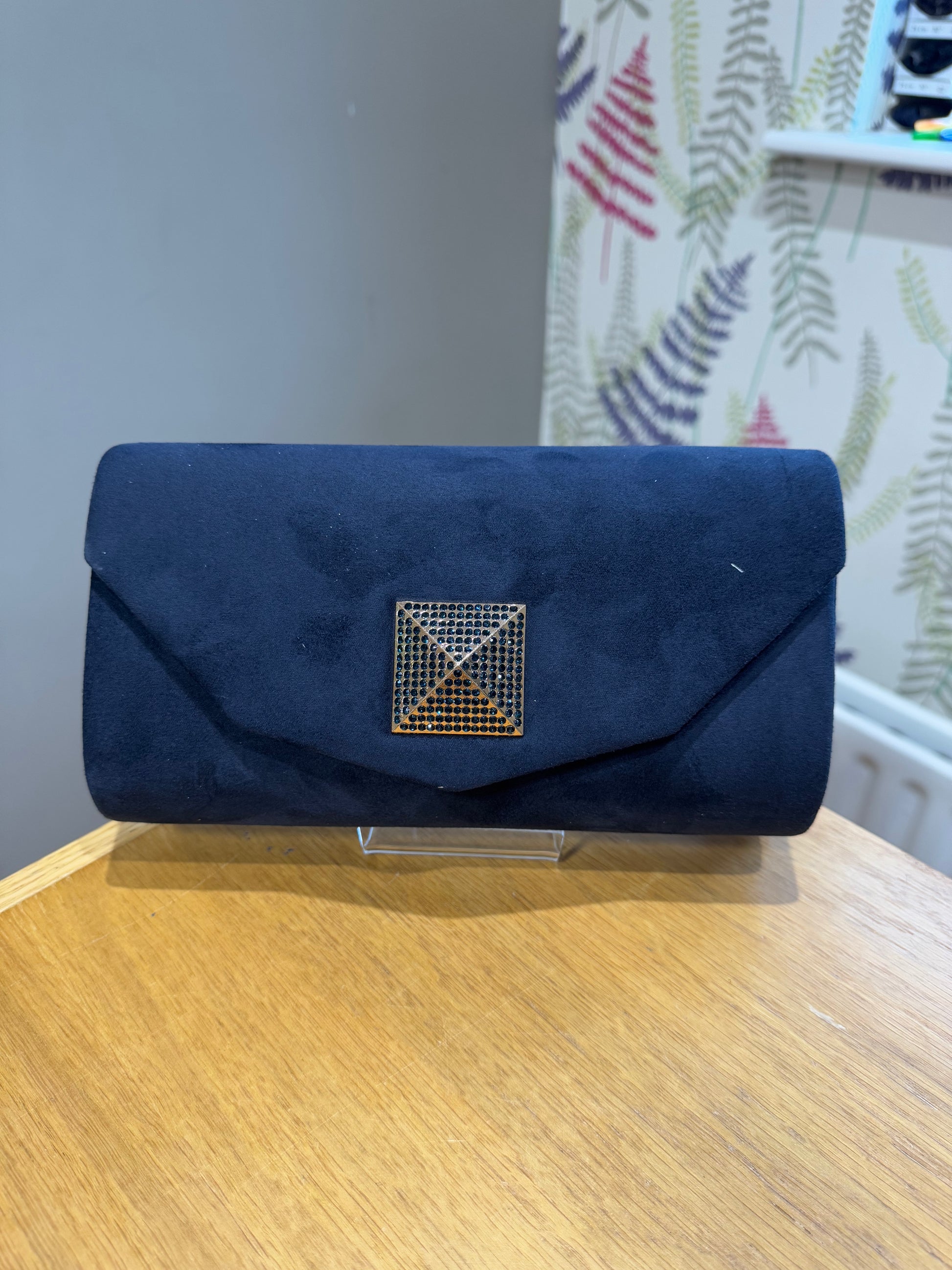 Sorento Envelope Style Clutch Bag in Suede Finish with Gold Motif to Match Sorento Secret Garden Navy Court (Sold Separately)