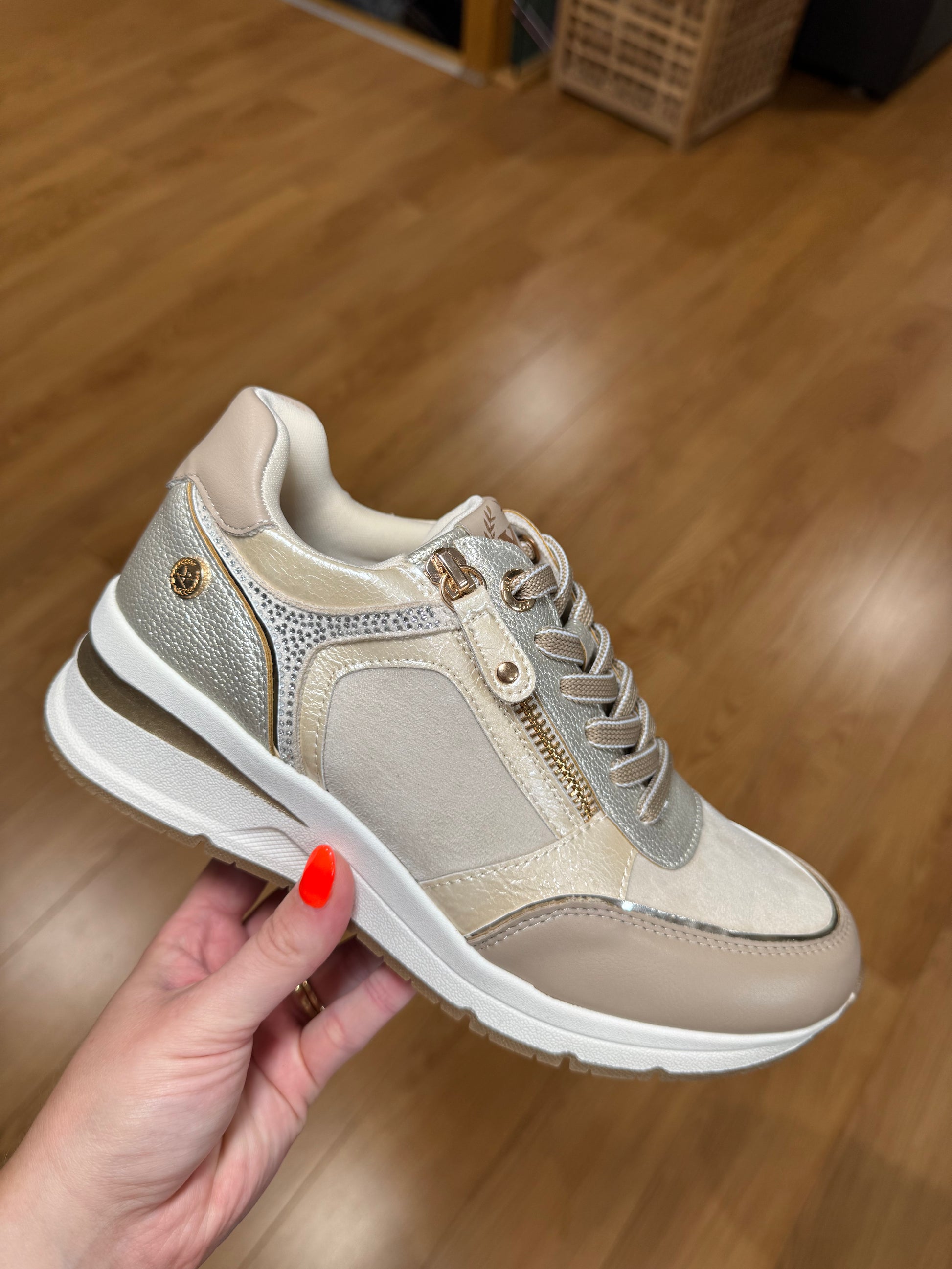 XTI Lace Up Trainer (Zip Opening) Multi Tonal Trainer with Built In Wedge & Embellished Design