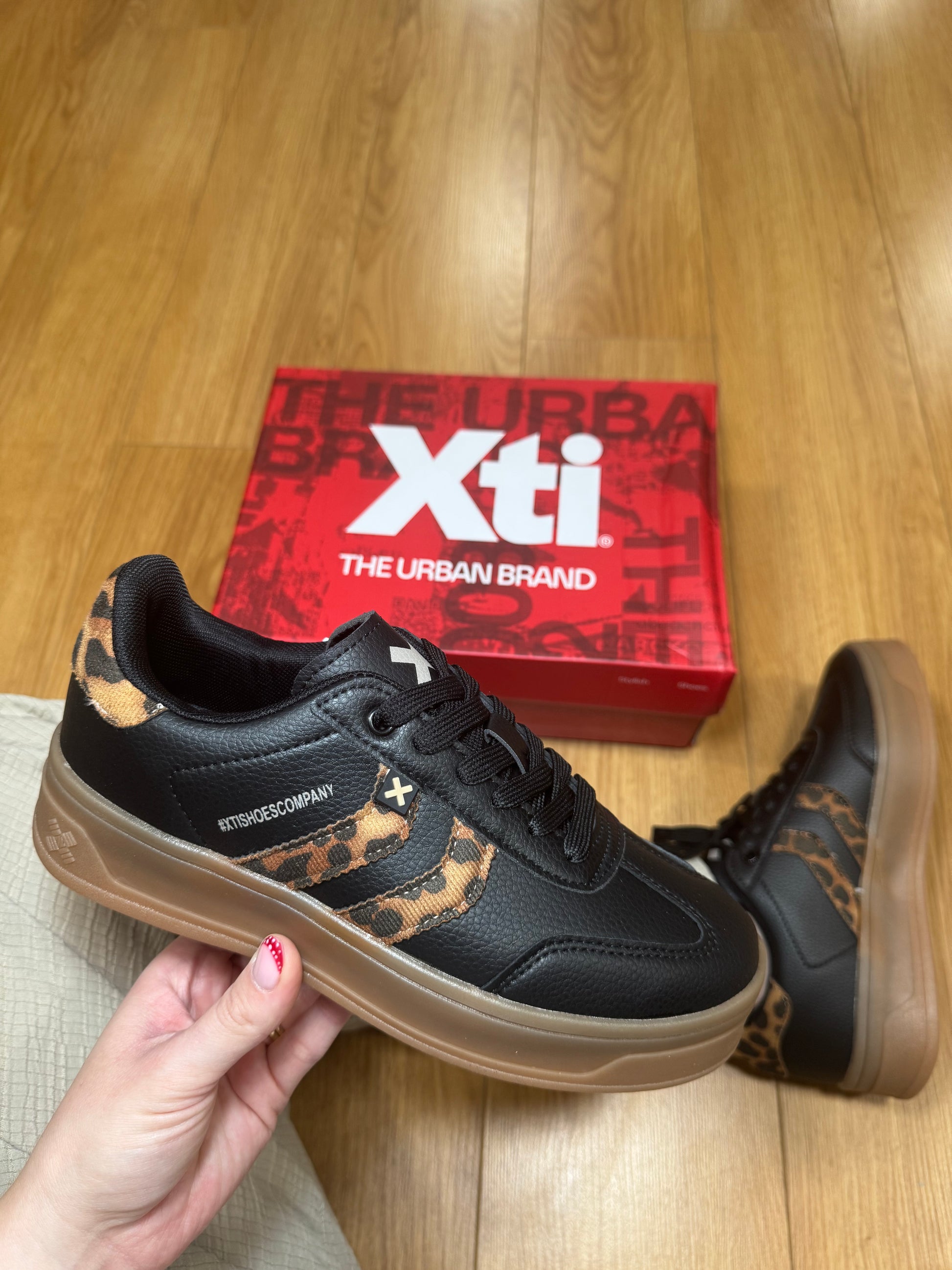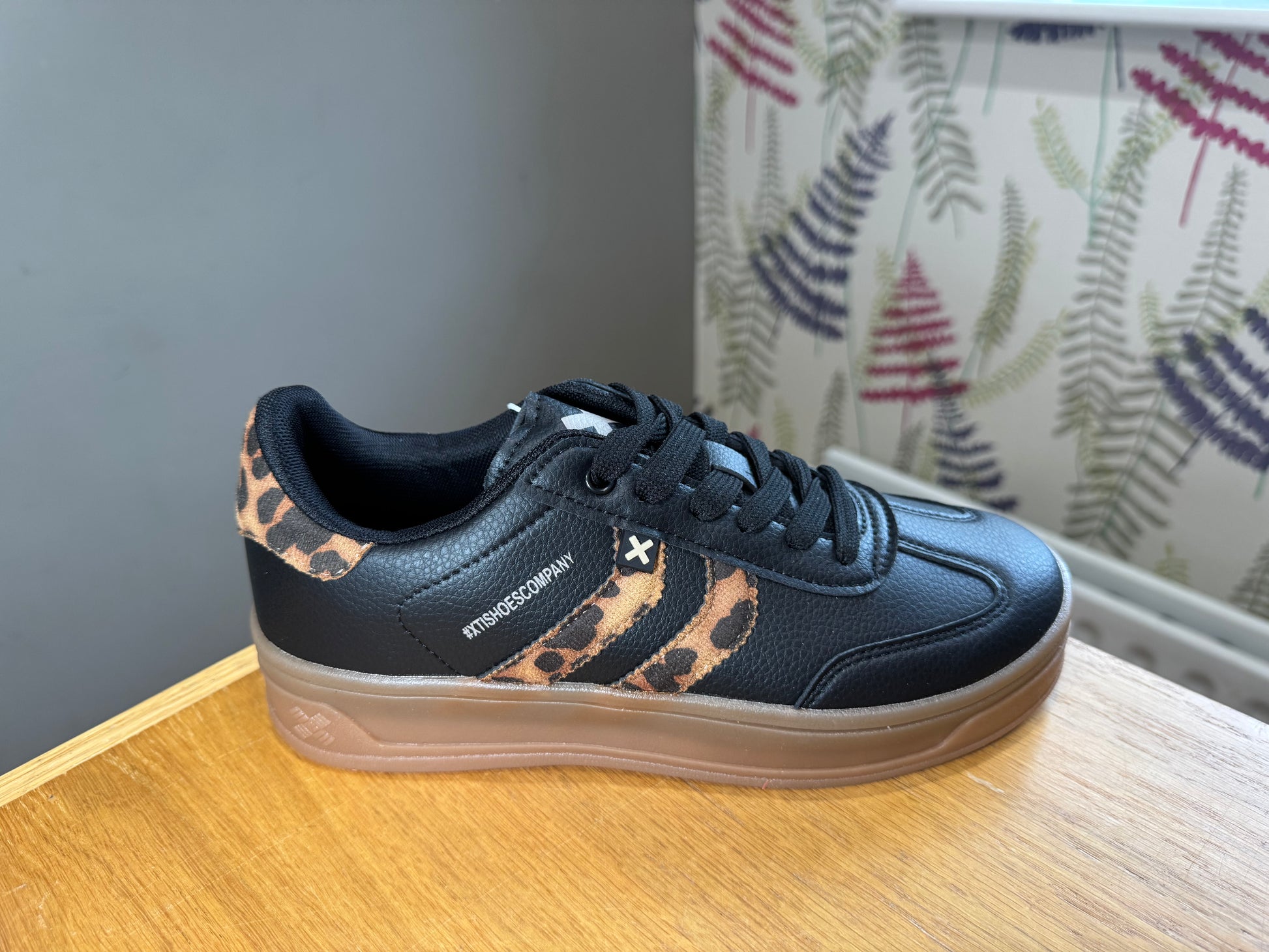 XTI Lace Up Contrasting Stripe Trainer with Gum Sole