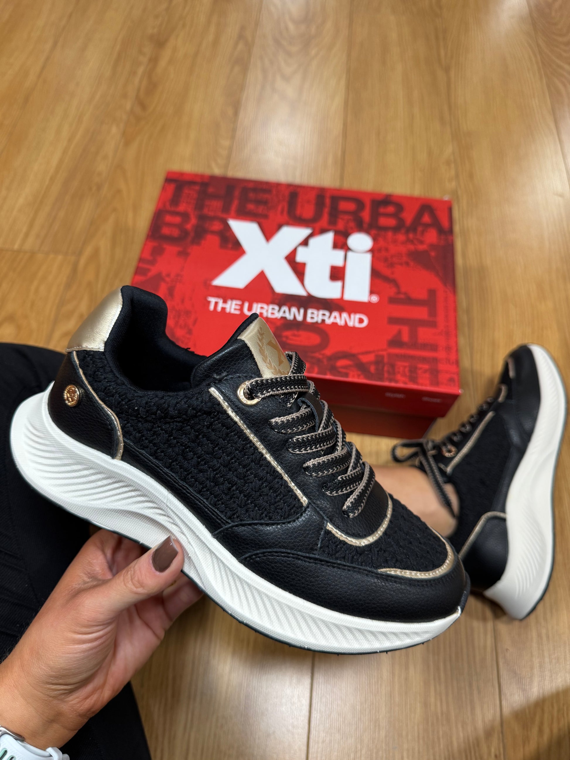XTI Lightweight Lace Up Trainer with Smart Weave Design & Gold Metallic Trims