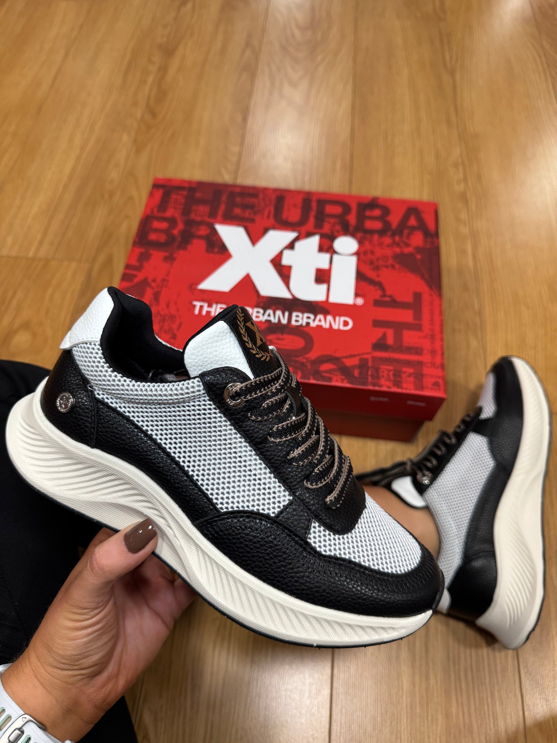 XTI Lightweight Lace Up Trainer in Two Tone Mesh Design