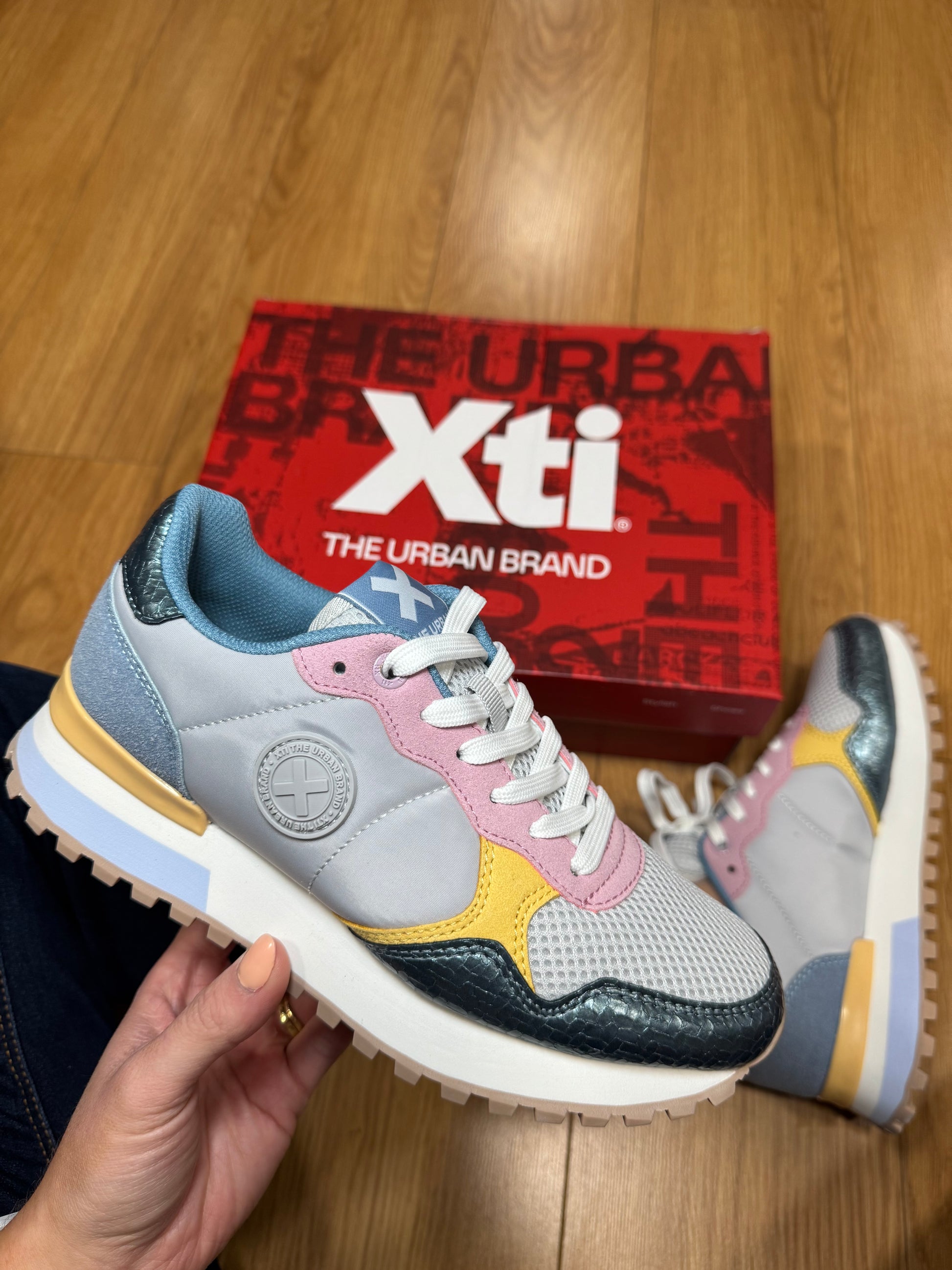 XTI Lightweight Lace Up Knit Style Trainers with Multi Colouring