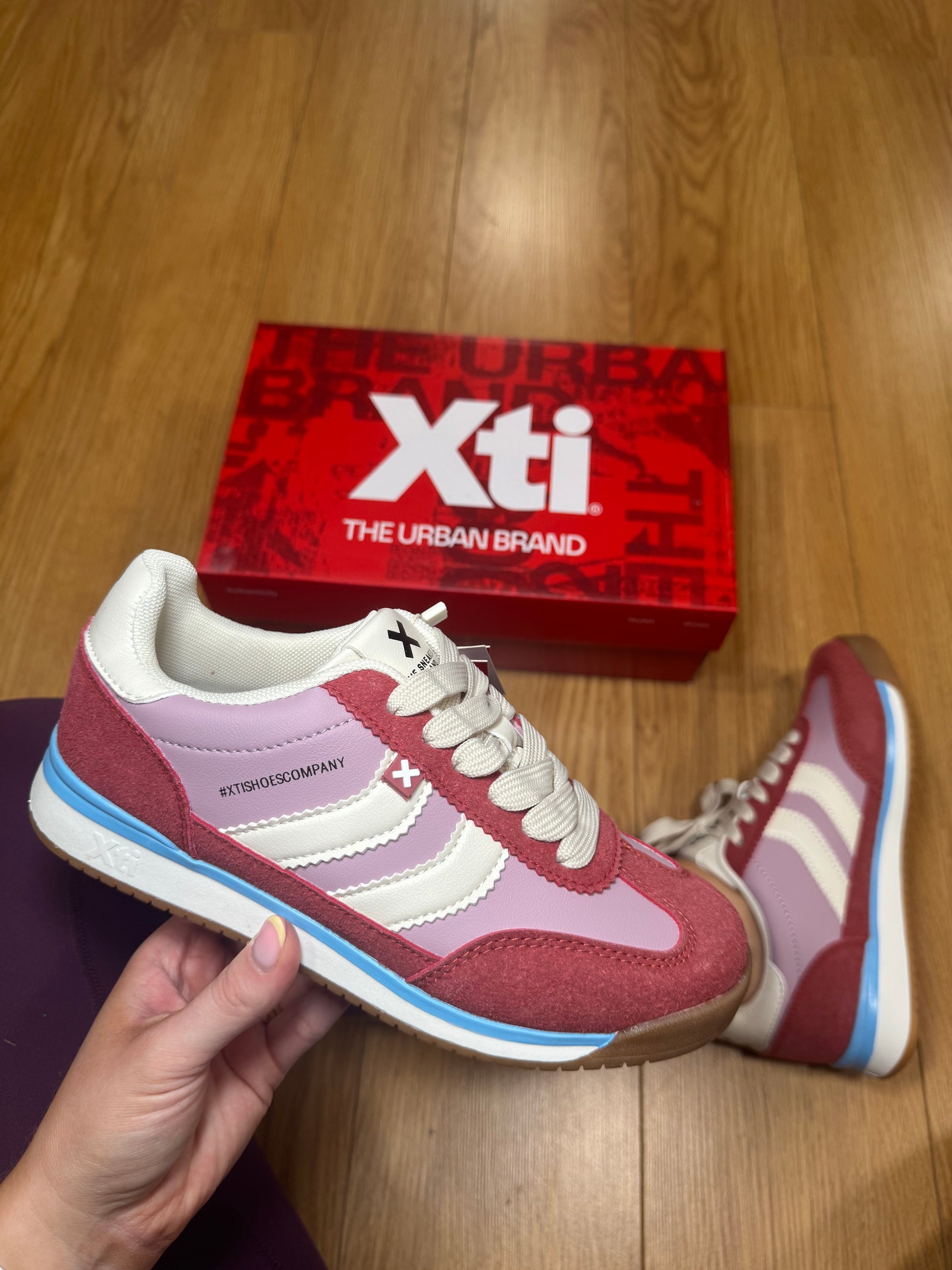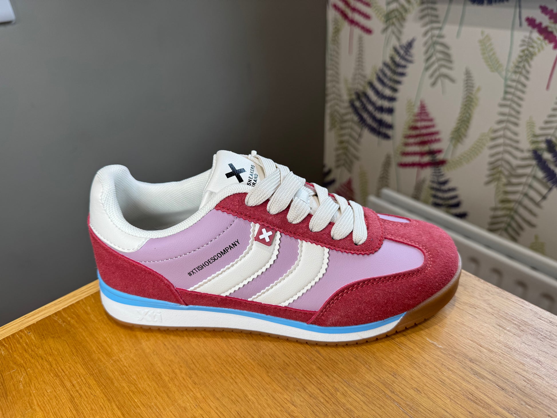 XTI Lace Up Trainer with Contrasting Three Tone Stripe