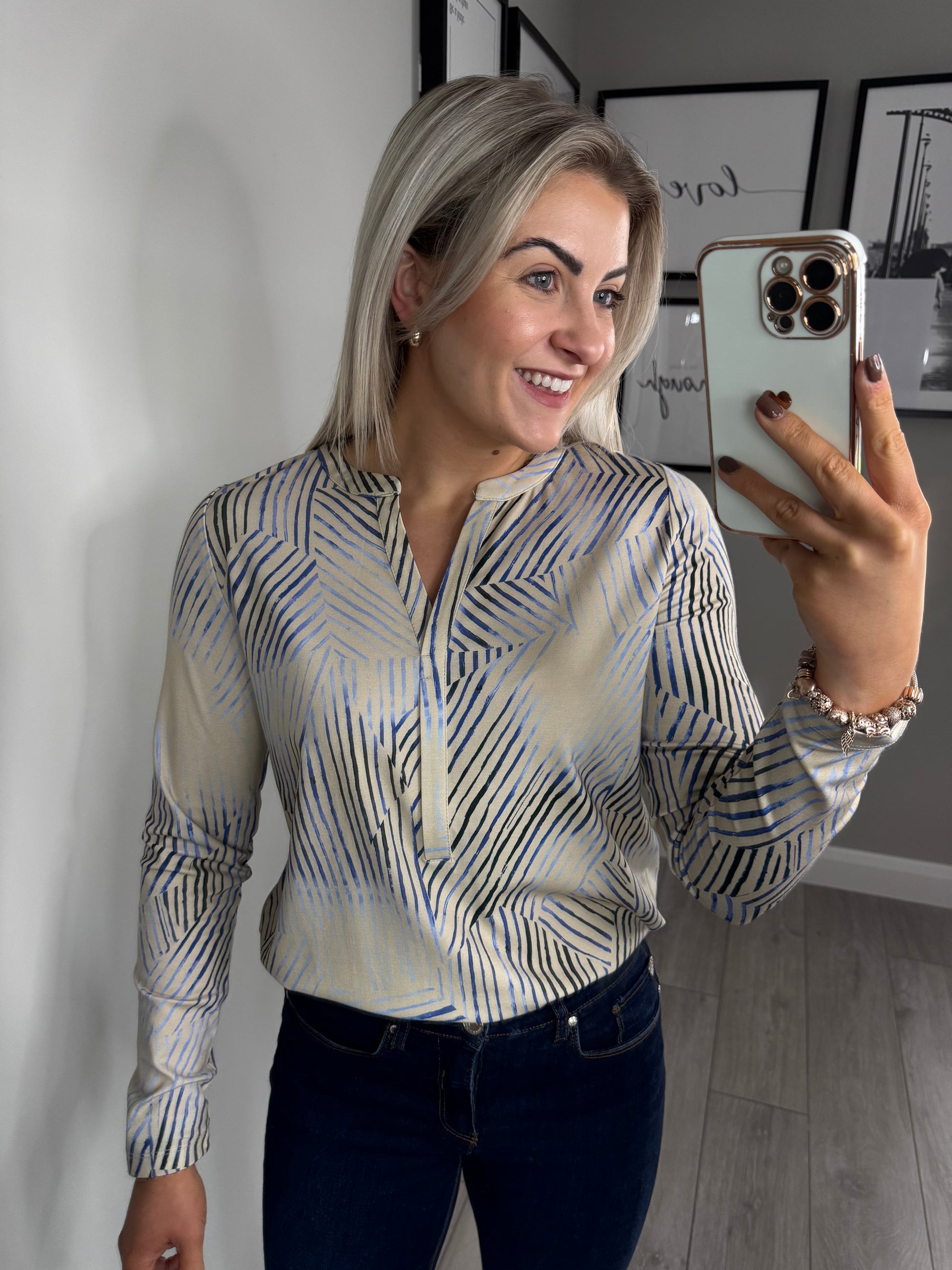 Yest Beige/Blue Print Blouse
