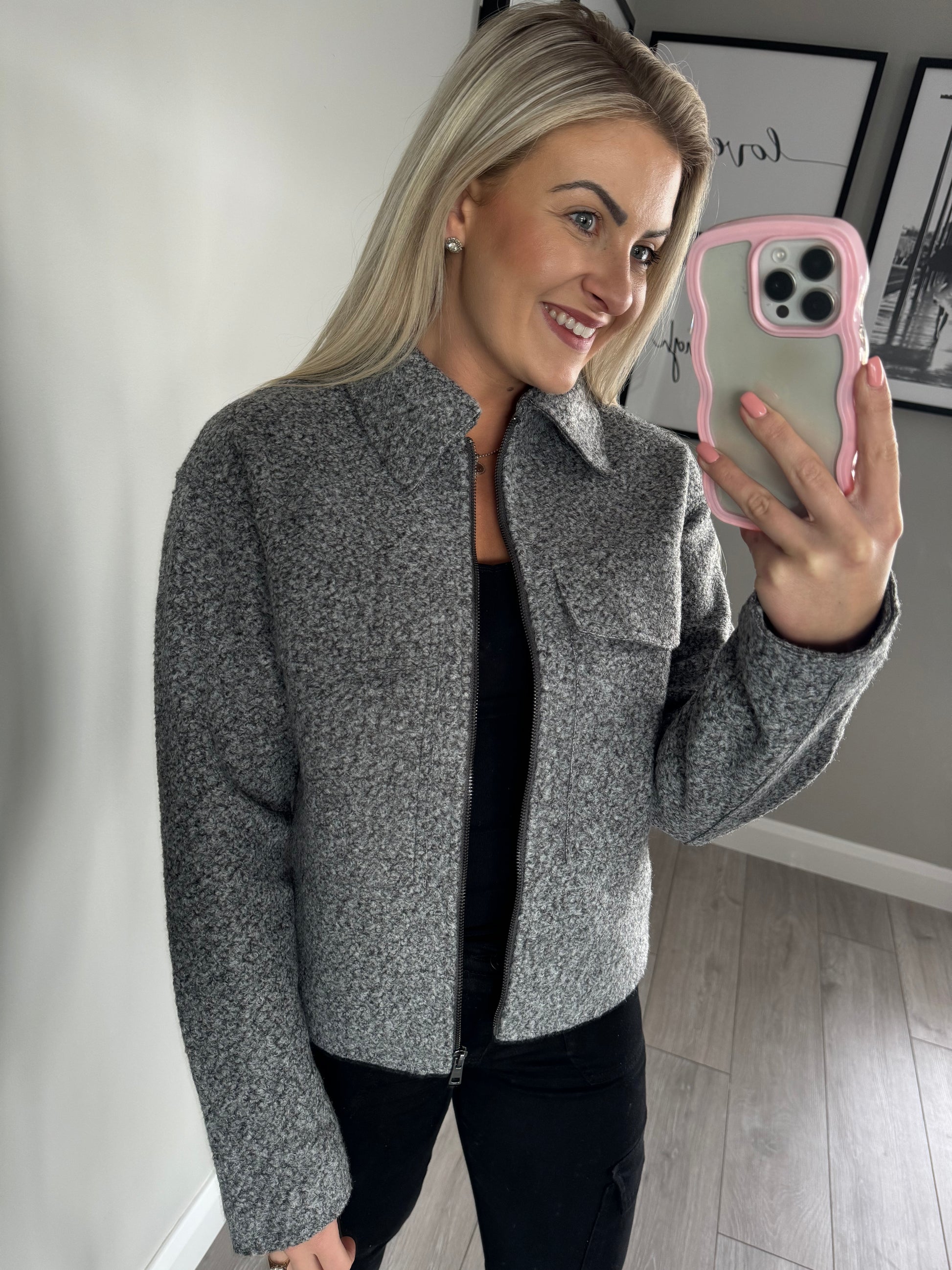 -Yest two toned grey marl jacket with zip fastening, collared neckline & double pocket detail (accessible two ways)