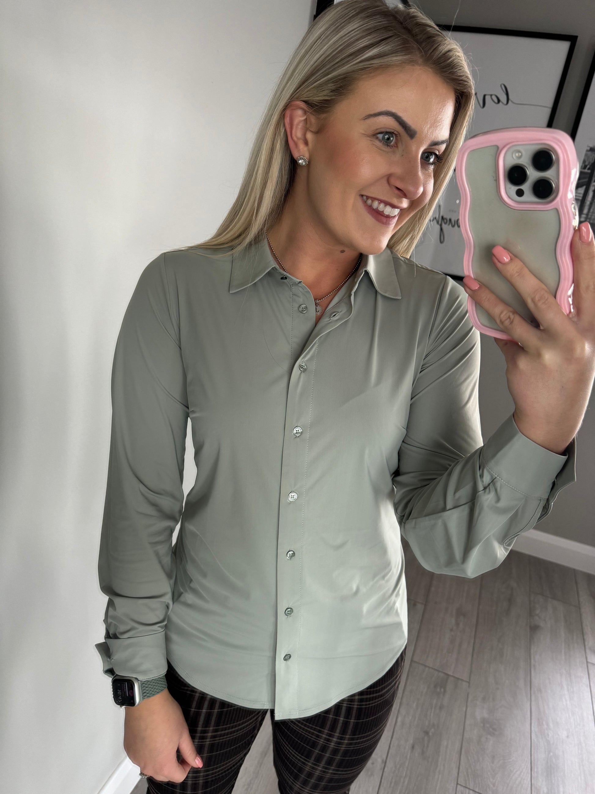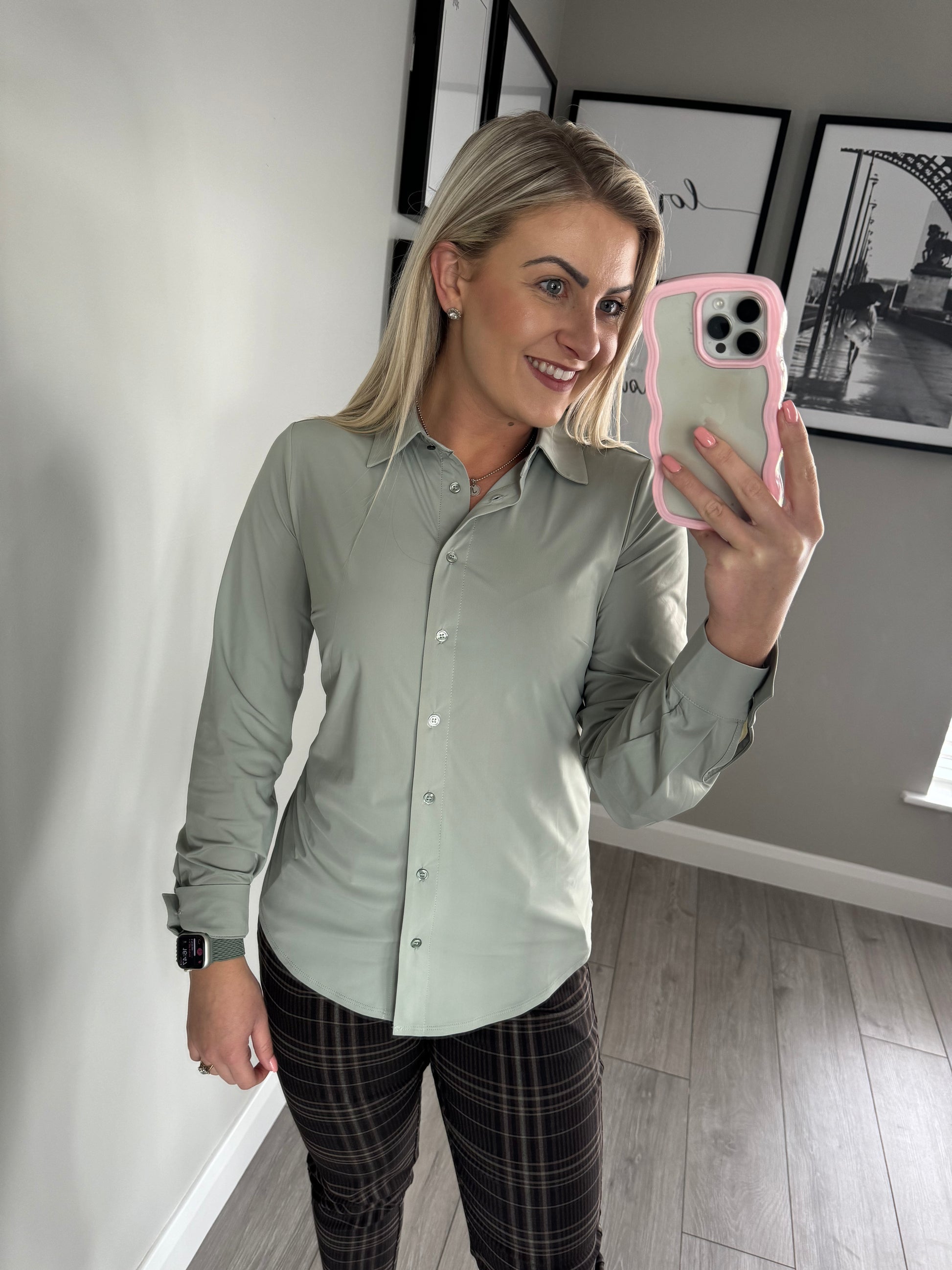 -Yest long sleeved sage green shirt in travel fabric (stretch anti-wrinkle)