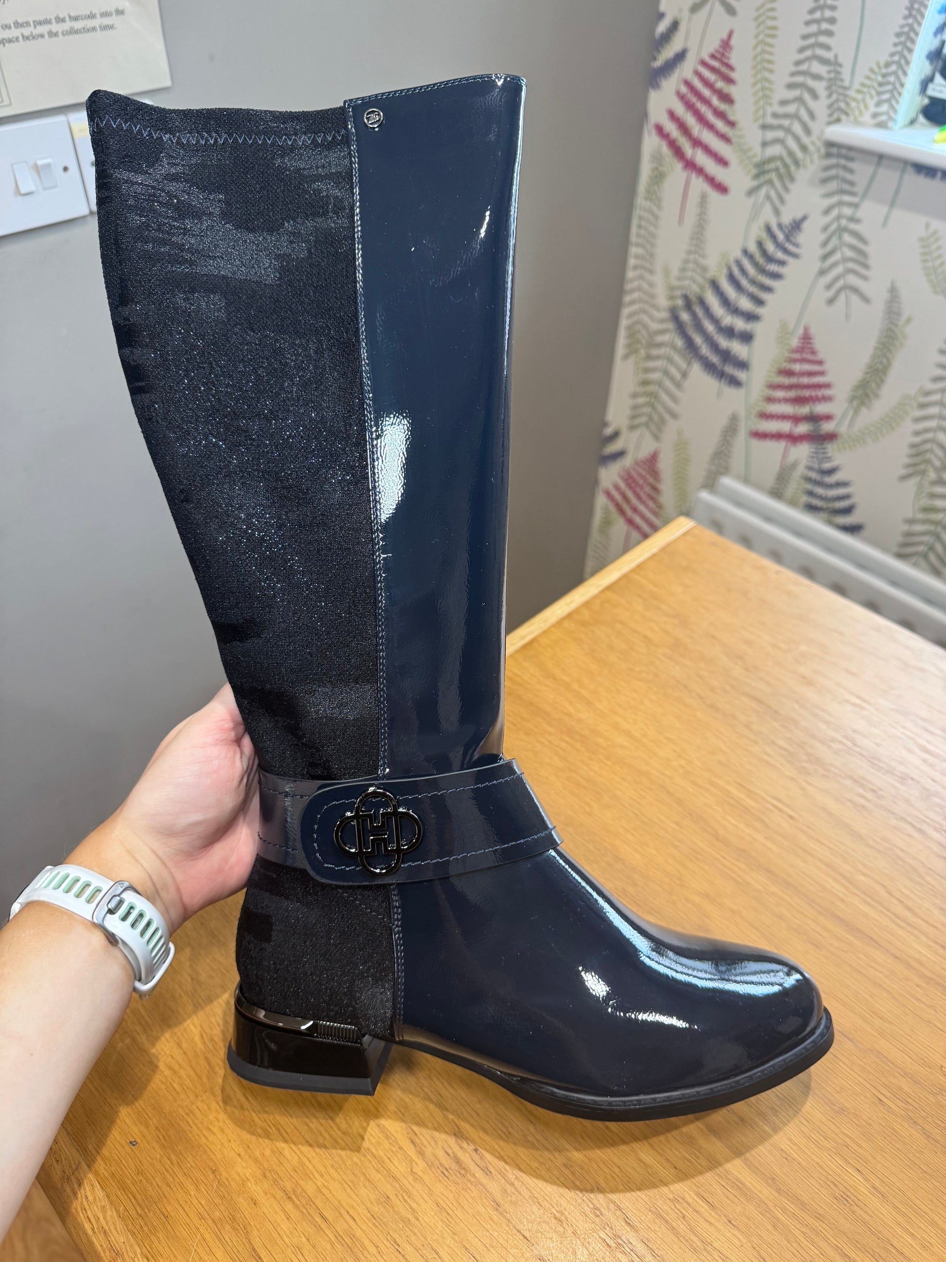 Zanni & Co Flat Patent Knee Boot with Shimmer Effect Back & Inside Zip Opening