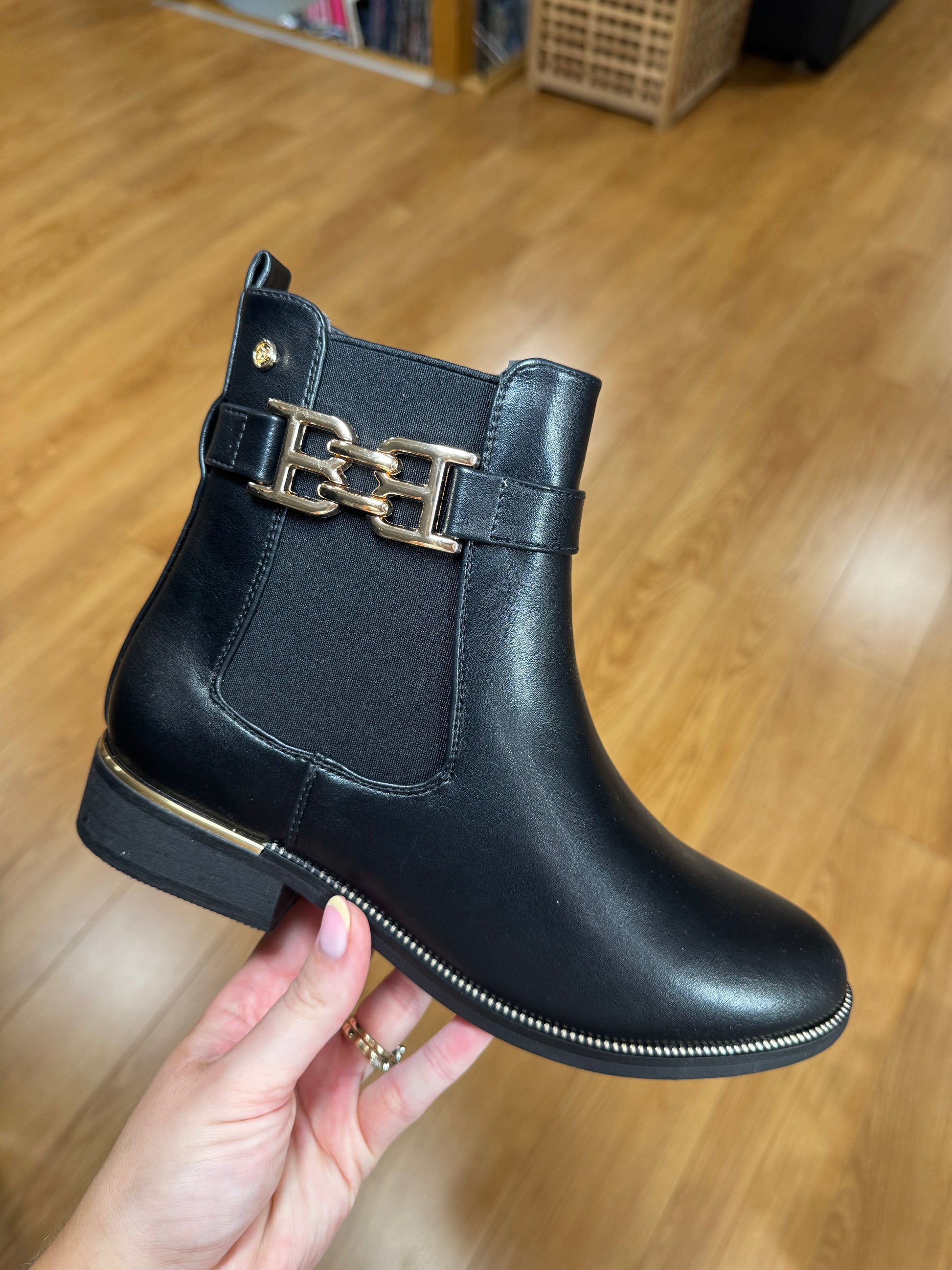 Zanni & Co Flat Chelsea Style Boot with Matching Gusset & Gold Chain/Heel Trim