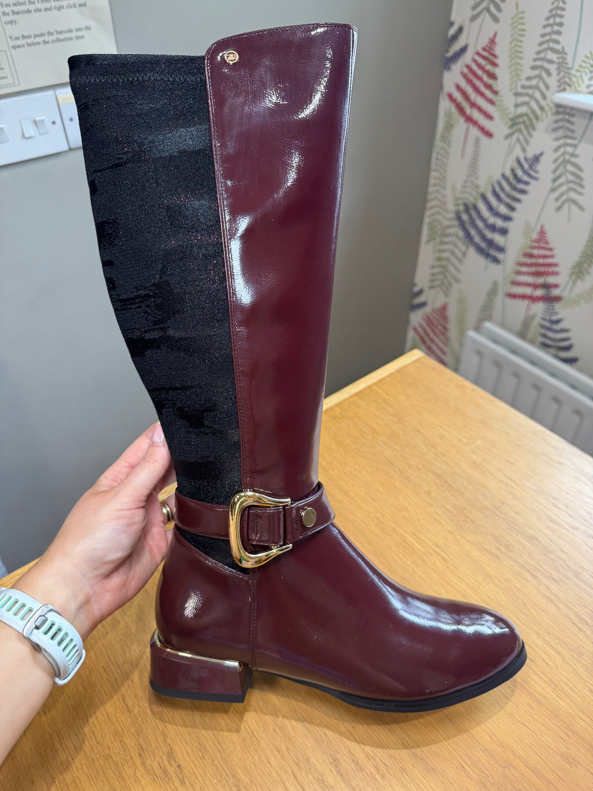 Zanni & Co Flat Patent Knee Boot with Shimmer Effect Back & Inside Zip Opening