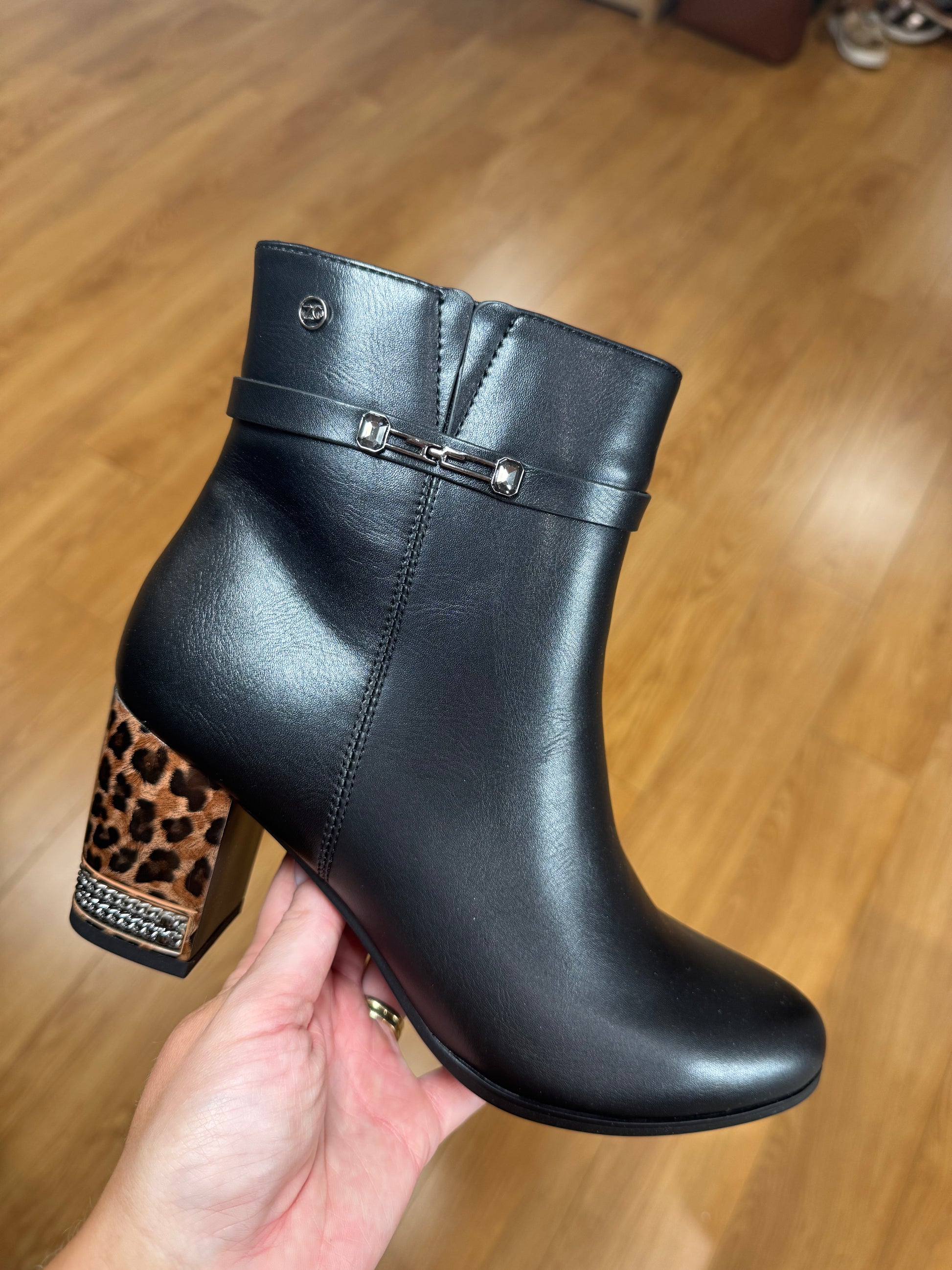 Zanni & Co Block Heeled Safari Print Boot with Plain PU Leather Upper & Inside Zip Opening