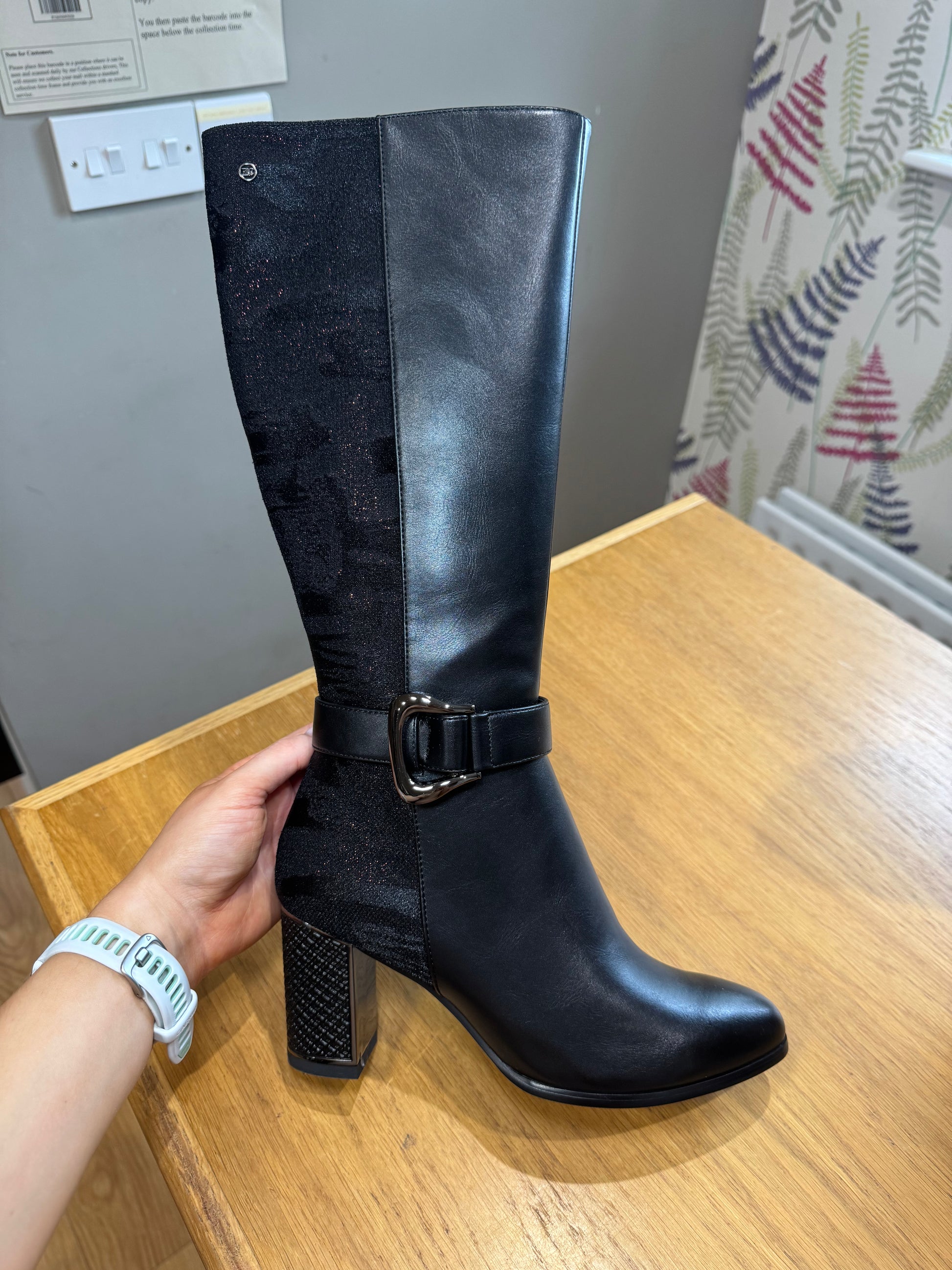 Zanni & Co Block Heel Knee Boot with Shimmer Effect Back & Inside Zip Opening