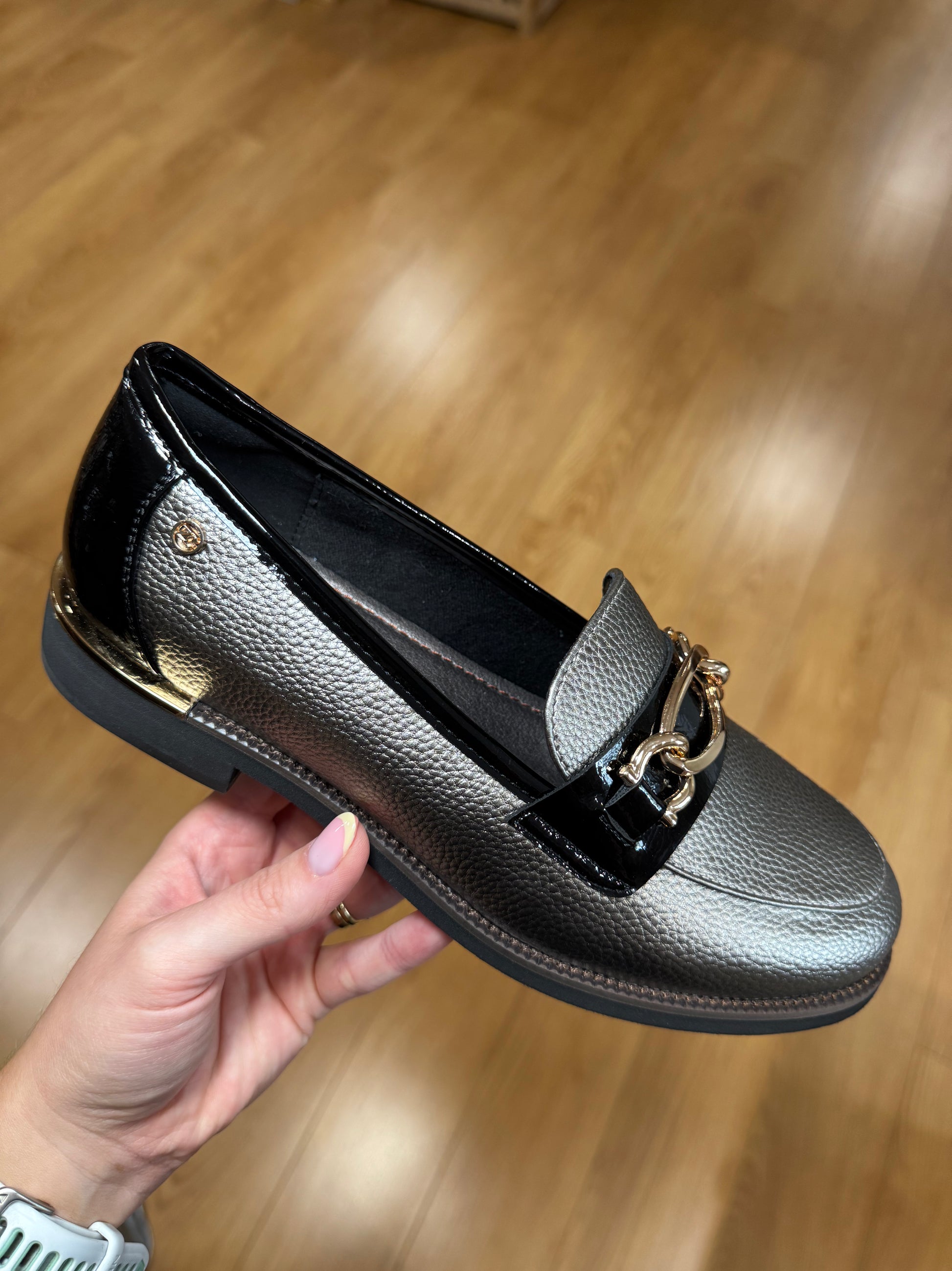 Zanni & Co Lightweight Slip On Loafer in Two Tone Colouring with Gold Buckle Detail/Heel Trim