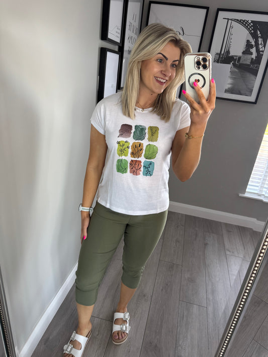Freequent Khaki Elasticated Crops