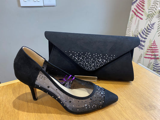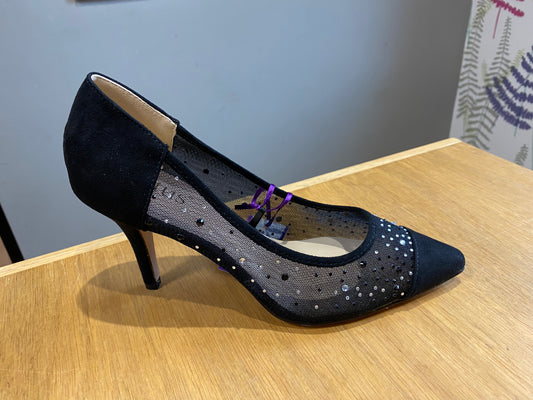 Lotus Maria Black Mesh Court Shoe