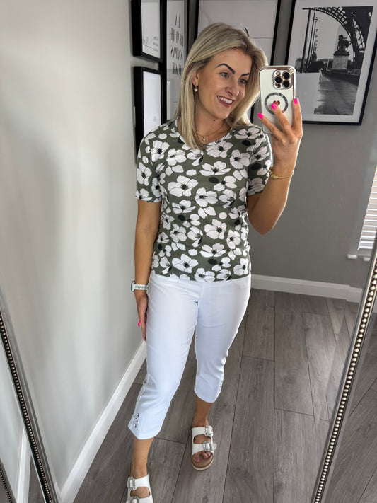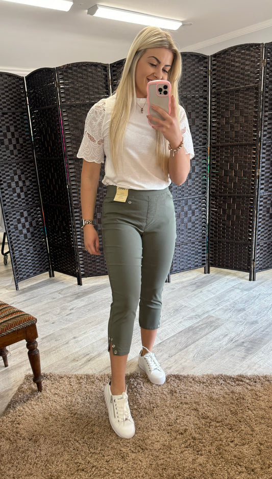 Pinns Khaki Button Bengaline Crops