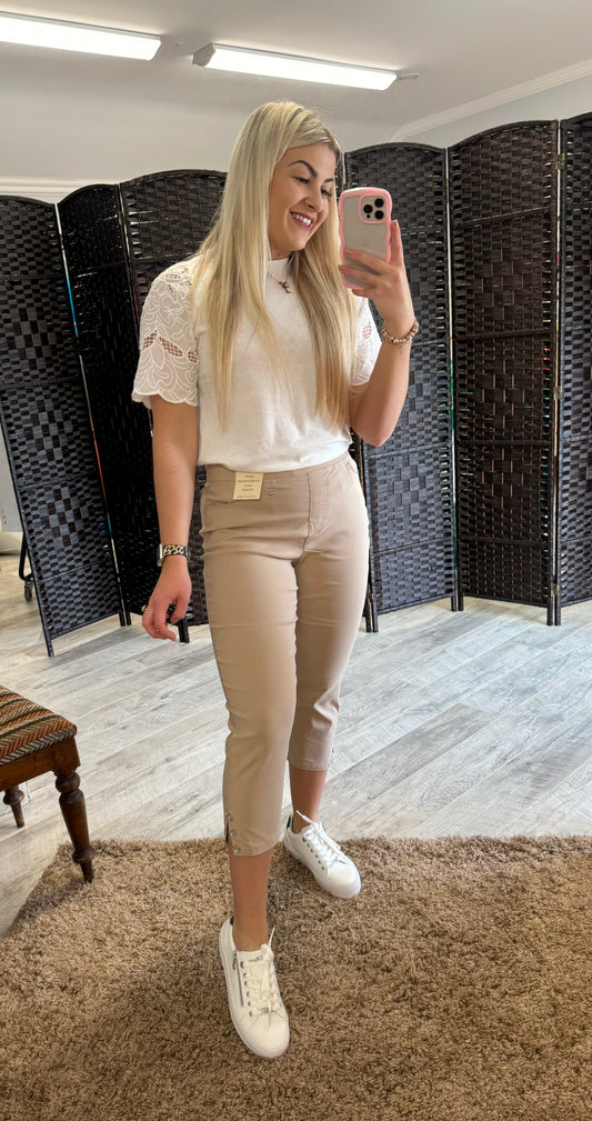 Pinns Beige Bengaline Diamanté Crops