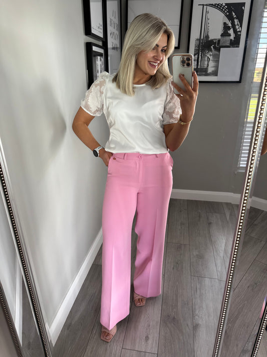 Rant & Rave Isabel Candy Pink Wide Leg Trouser