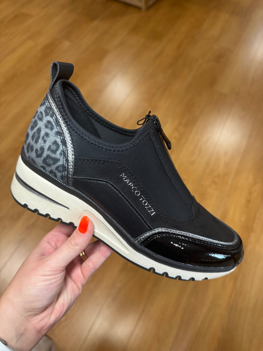 Marco Tozzi Black Zip Wedge Trainer