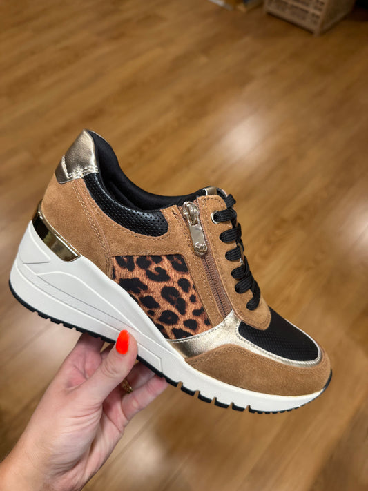 Marco Tozzi Tan/Leopard Zip Trainer