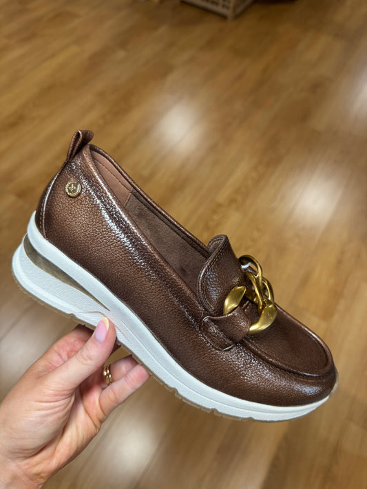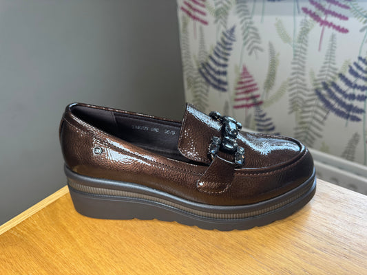 XTI Taupe Patent Wedge Loafer