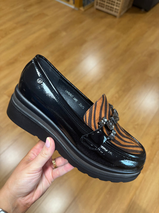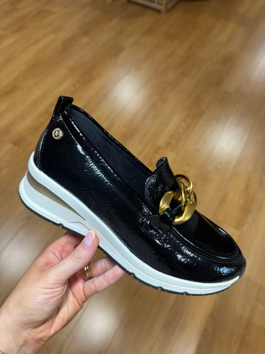 XTI Black Patent Wedge Loafer