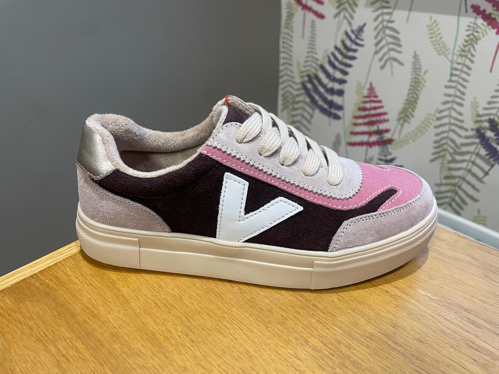 Drilleys Lace Up Trainer with V Design & Contrasting Three Tone Colouring